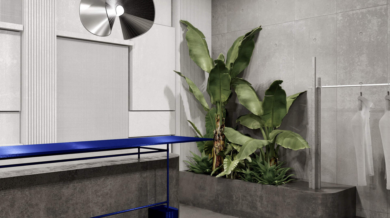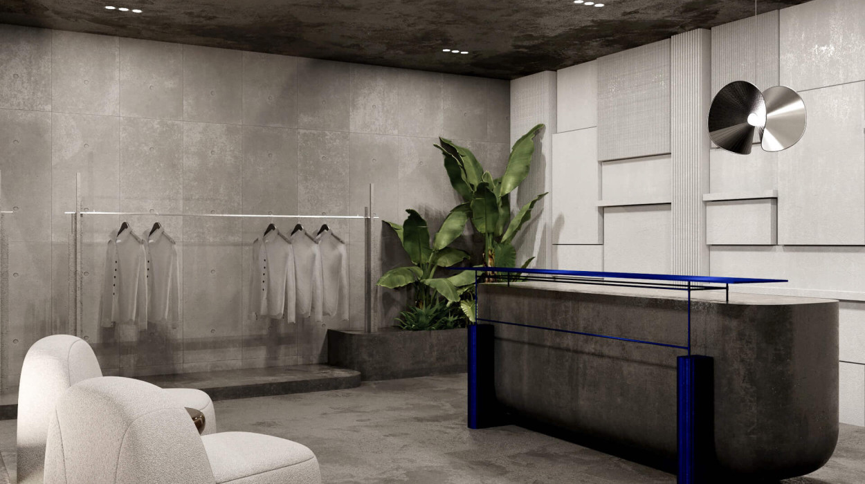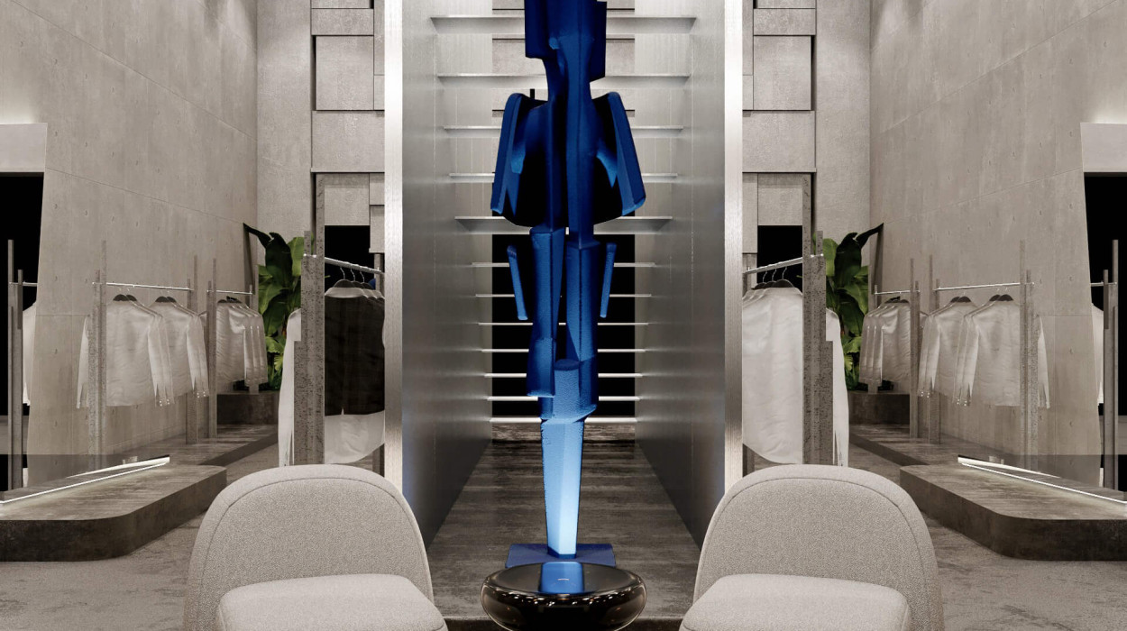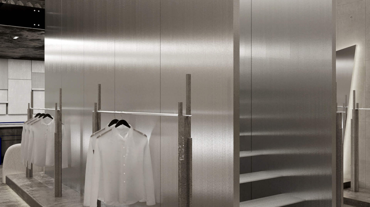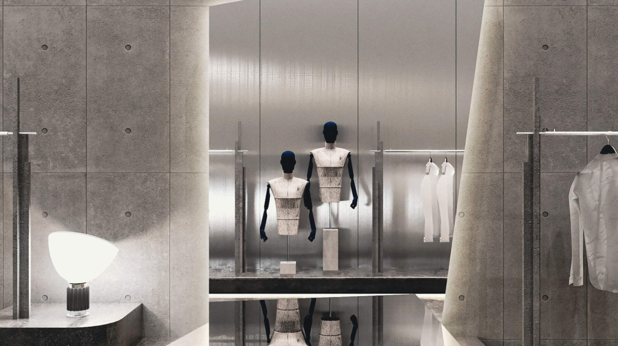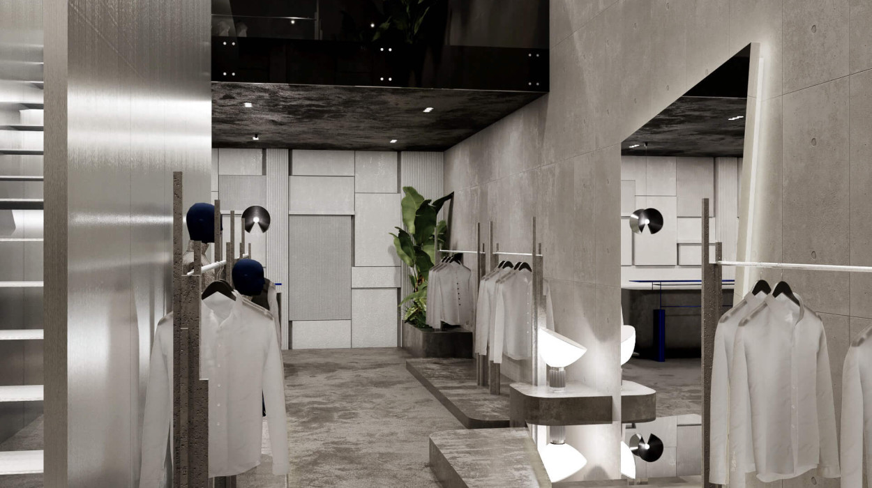 Anstelle eines herkömmlichen High-End-Modegeschäfts wurde das Konzept als industriell inspirierter Erlebnisort konzipiert, ein Raum, der das Einkaufen zu einem kuratierten Erlebnis macht.